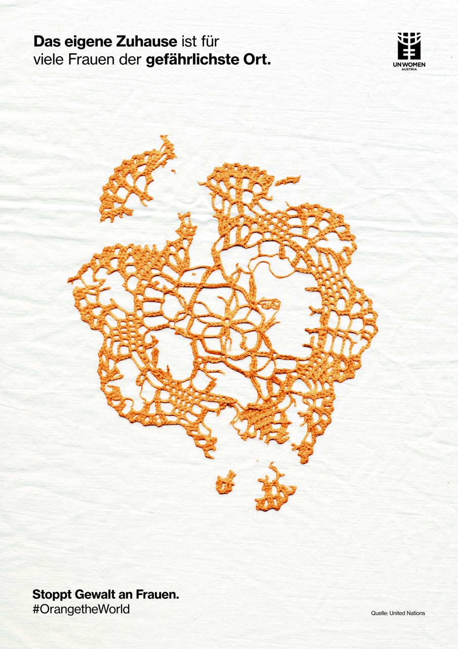 Im Rahmen meiner Masterarbeit habe ich die feministische Plakatkampagne #OrangeTheWorld im Stil textiler Handarbeit neu interpretiert. Mit Techniken wie Sticken und Häkeln entstand eine emotionale und zugleich sensible Bildsprache. Sichtbare Beschädigungen verweisen auf erlebte Gewalt, während ein oranger Faden für visuelle Zusammengehörigkeit sorgt.